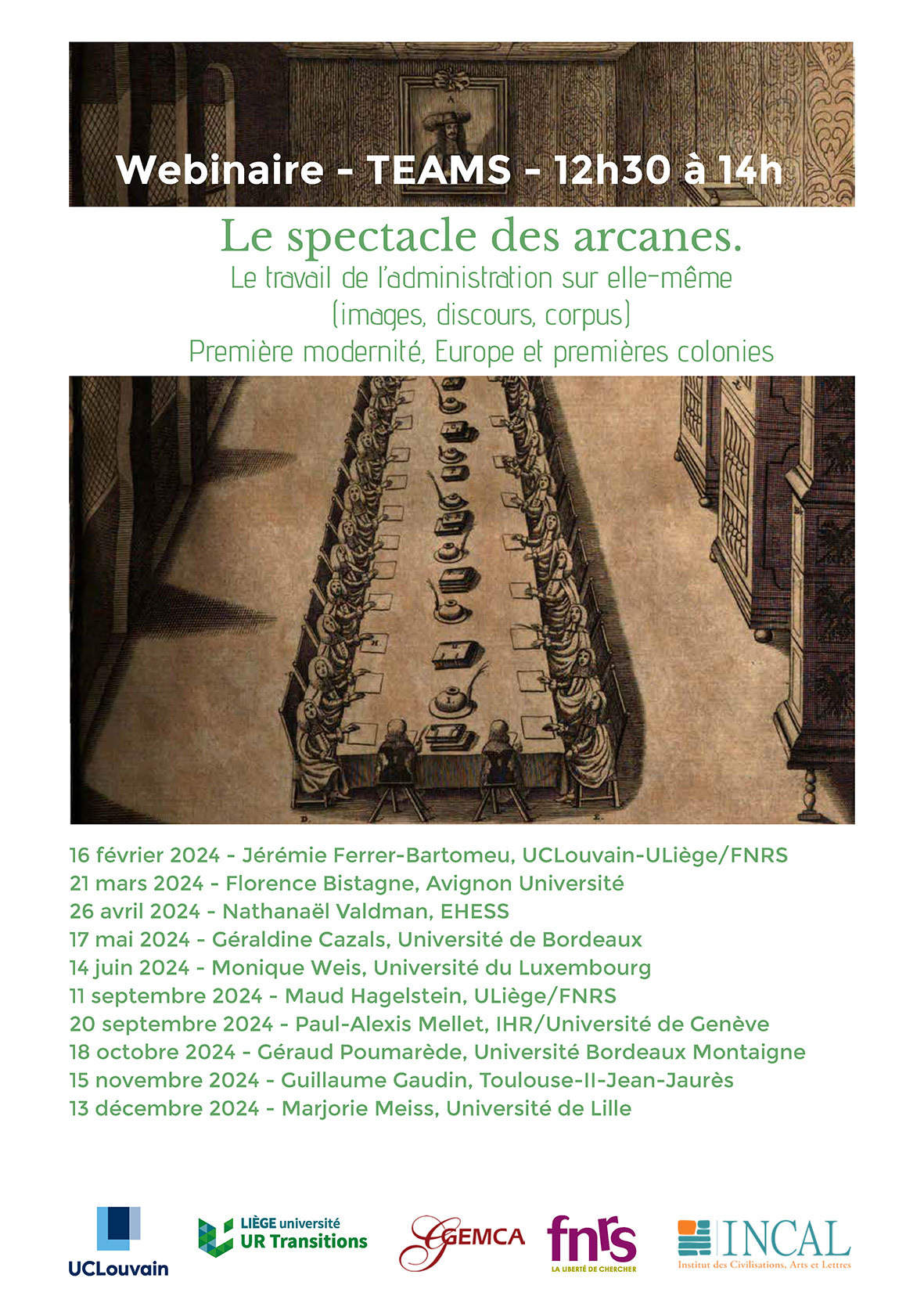 February 16, 2024: webinar (in French) offered by Jérémie Ferrer-Bartomeu, opening of a longer series of events on the imagery, discourses, and corpora related to administration’s work on itself: Le spectacle de l’arcanes - Le travail de l’administration sur elle-même (images, discours, corpus)