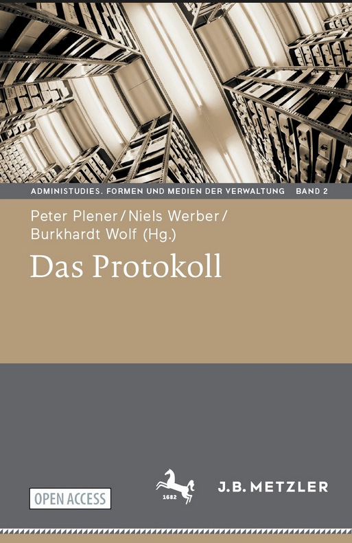 July saw the publication of Das Protokoll (J. B. Metzler Berlin, Heidelberg 2023), the second volume in the series AdminiStudies. Formen und Medien der Verwaltung. It gathers 15 contributions co-edited by Peter Plener, Niels Werber and Burkhardt Wolf, and it takes up three main forms of the protocol as an administrative medium: conversation or progress protocols, diplomatic and technical protocols. The book is available in print, but also digitally, in Open Access.